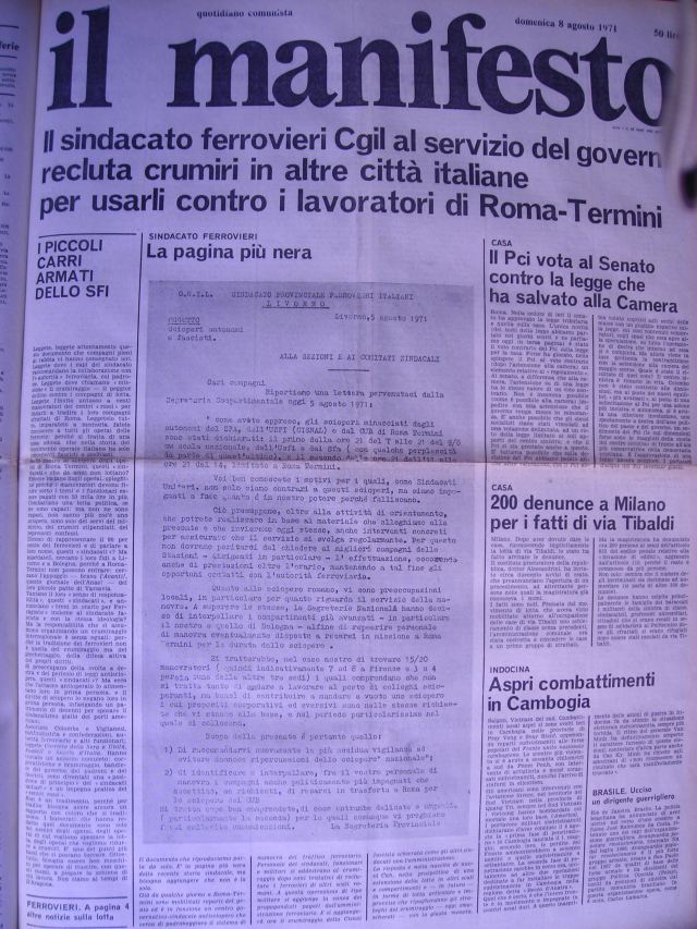Questa voce è stata pubblicata in Lotte in ferrovia e contrassegnata con 1971, Autonomia Operaia, Autorganizzazione, Cgil, Comitato di Base, Ferrovie, ferrovieri, Il Manifesto, Pintor, Sindacato ferrovieri sfi-cgil. Contrassegna il permalink.
