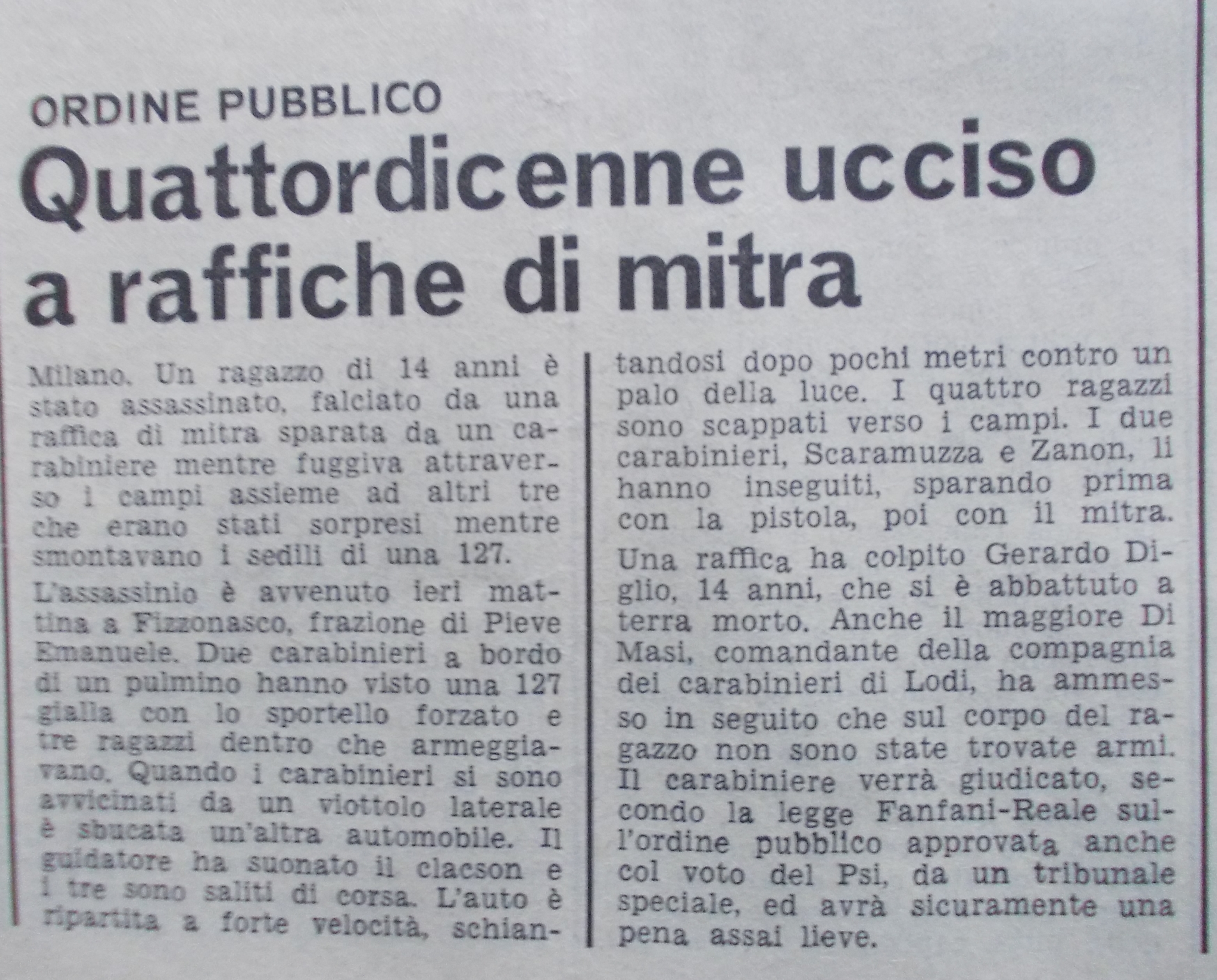 “Caso n.622, 27-06-89, Nave (BS): Claudio Ghidini, 19 anni… Un’auto con tre giovani a bordo viene fermata dai carabinieri per un controllo. Un milite intima a Ghedini di salire sulla sua auto: il giovane si rifiuta per aspettare gli amici, ma viene preso a schiaffi e poi ucciso da un colpo di pistola alla testa. Forze dell’ordine: carabinieri. Fonte: Il Giorno. ”