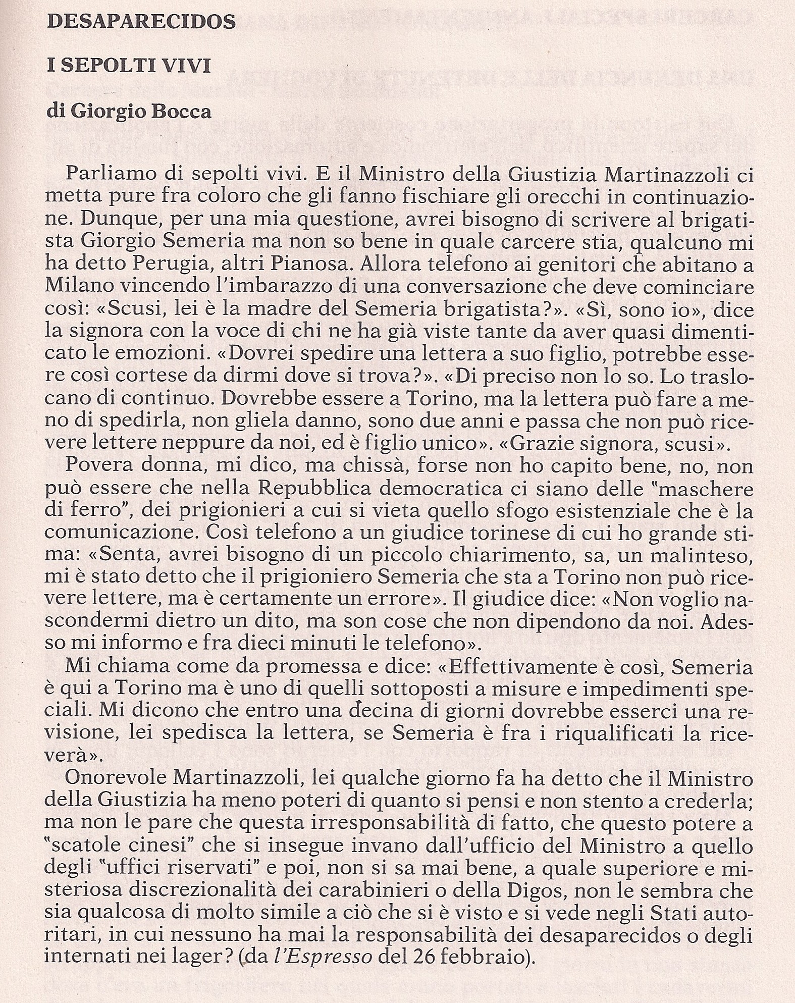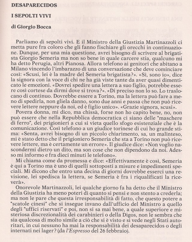 Anche il democratico Bocca si scandalizza…delle “carceri speciali”
