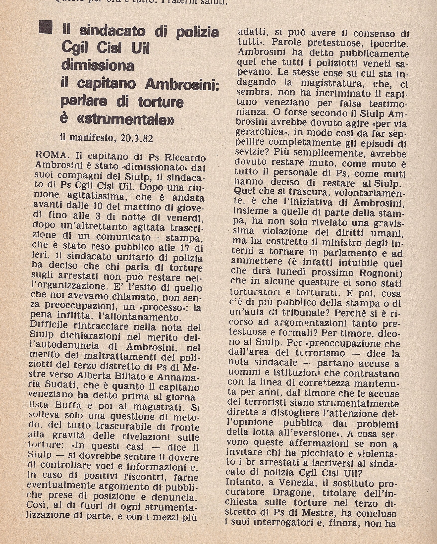 Pingback: Le torture su Alberto Buonoconto, poi morto suicida … 1975, questura di Napoli « Polvere da sparo