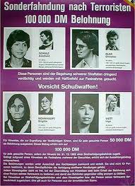 KLAUS: in questa foto (…) si vedono i simboli di RZ, I Weathermen (USA), ETA, IRA, la coordinazione di gruppi latinoamericani, il Polisario, il Movimento 2 Giugno, il Fronte popolare di Liberazione della Palestina,la RAF, BR, i Fedayn del popolo in Iran che puntano al nemico principale il Pentagono e, poiché si tratta di un manifesto tedesco, qualcuno ha aggiunto il BKA (polizia federale tedesca) che proprio oggi compie, purtroppo, 50 anni.