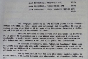 2) di identificare e interpellare, fra il vostro personale di manovra i compagni anche politicamente più impegnati che accettino, se richiesti, di recarsi in trasferta a Roma per lo sciopero dei Cub.