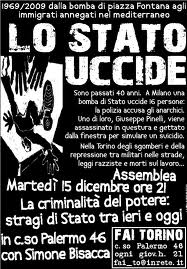 “Dietro gli assassini di Milano non ci sono solo i fascisti veri e propri, ma ci sono, da un lato le forze borghesi più arretrate e parassite […] dall’altro l’ala avanzata e riformista della borghesia che vuole rinsaldare attorno alle istituzioni «repubblicane e democratiche» del patto costituzionale la propria unità di potere nell’oppressione e nello sfruttamento.” [Da un volantino del 14 dicembre ’69]