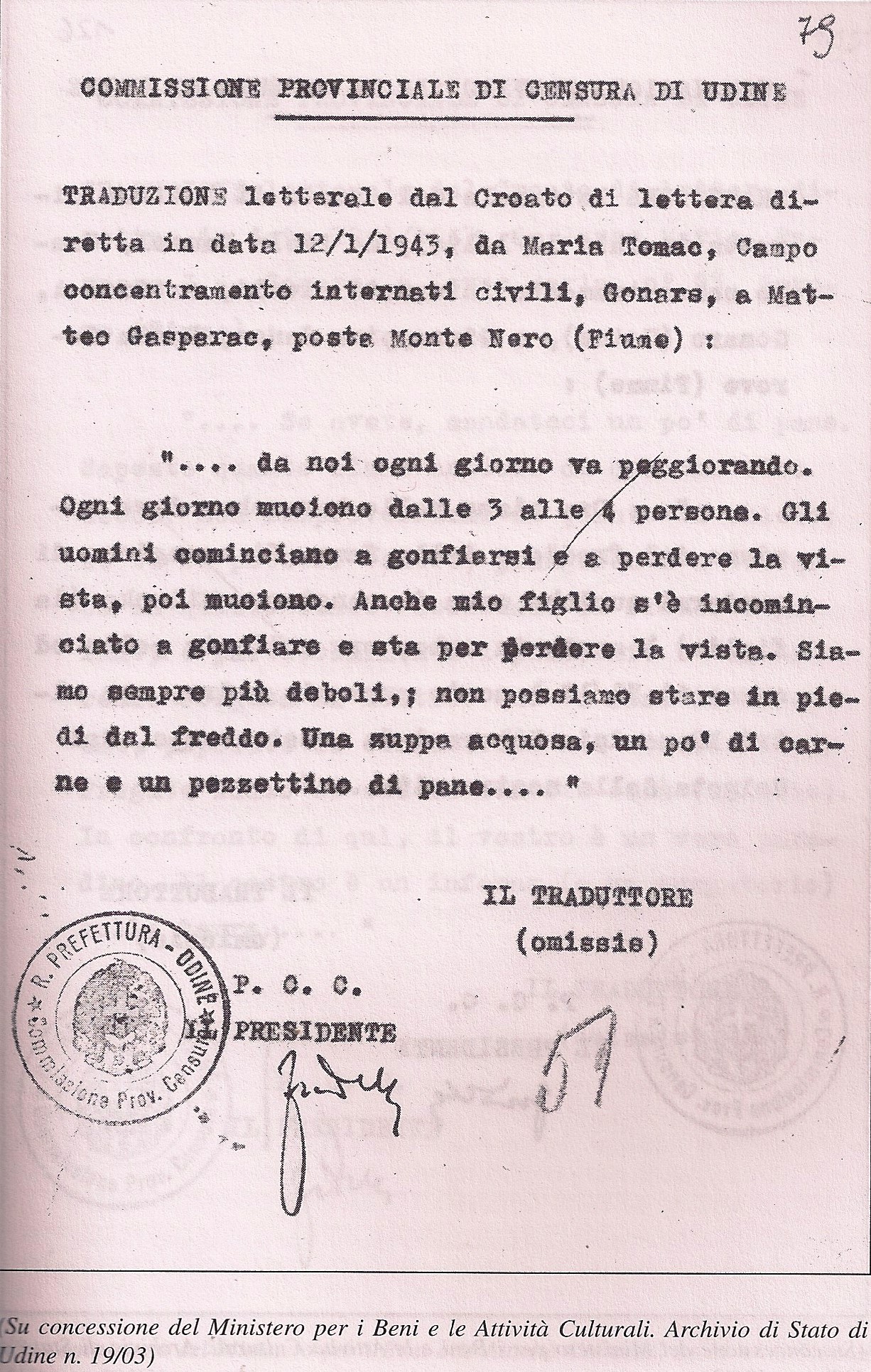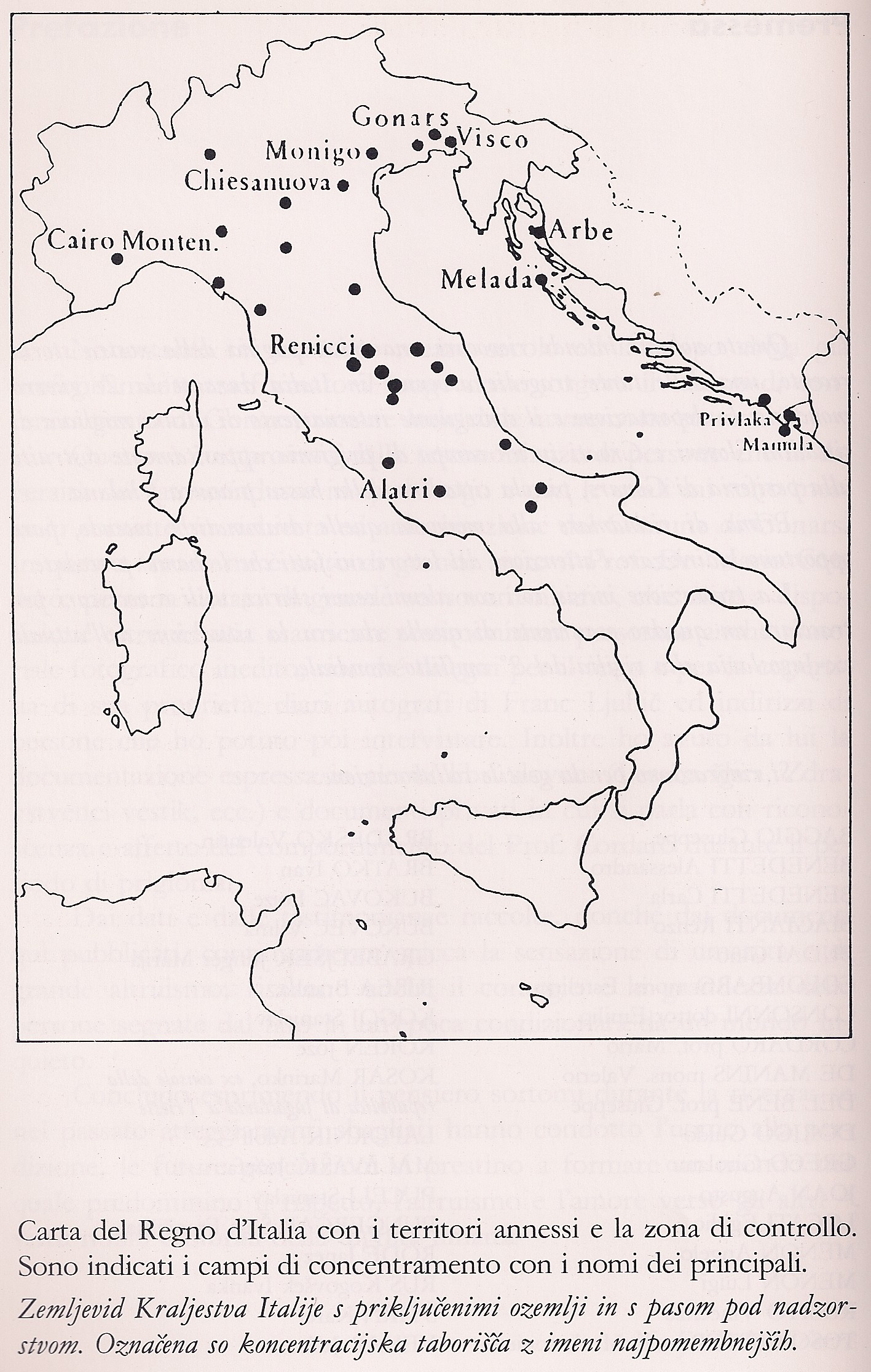 del Regno un complesso di altri 50.000 elementi circa, sgombrati dai territori della frontiera orientalein seguito alle operazioni di polizia in corso… » [Alessandra Kersevan, Un campo di concentramento fascista, Gonars. Ed Kappa Vu 2003, pag.79, seg.]
