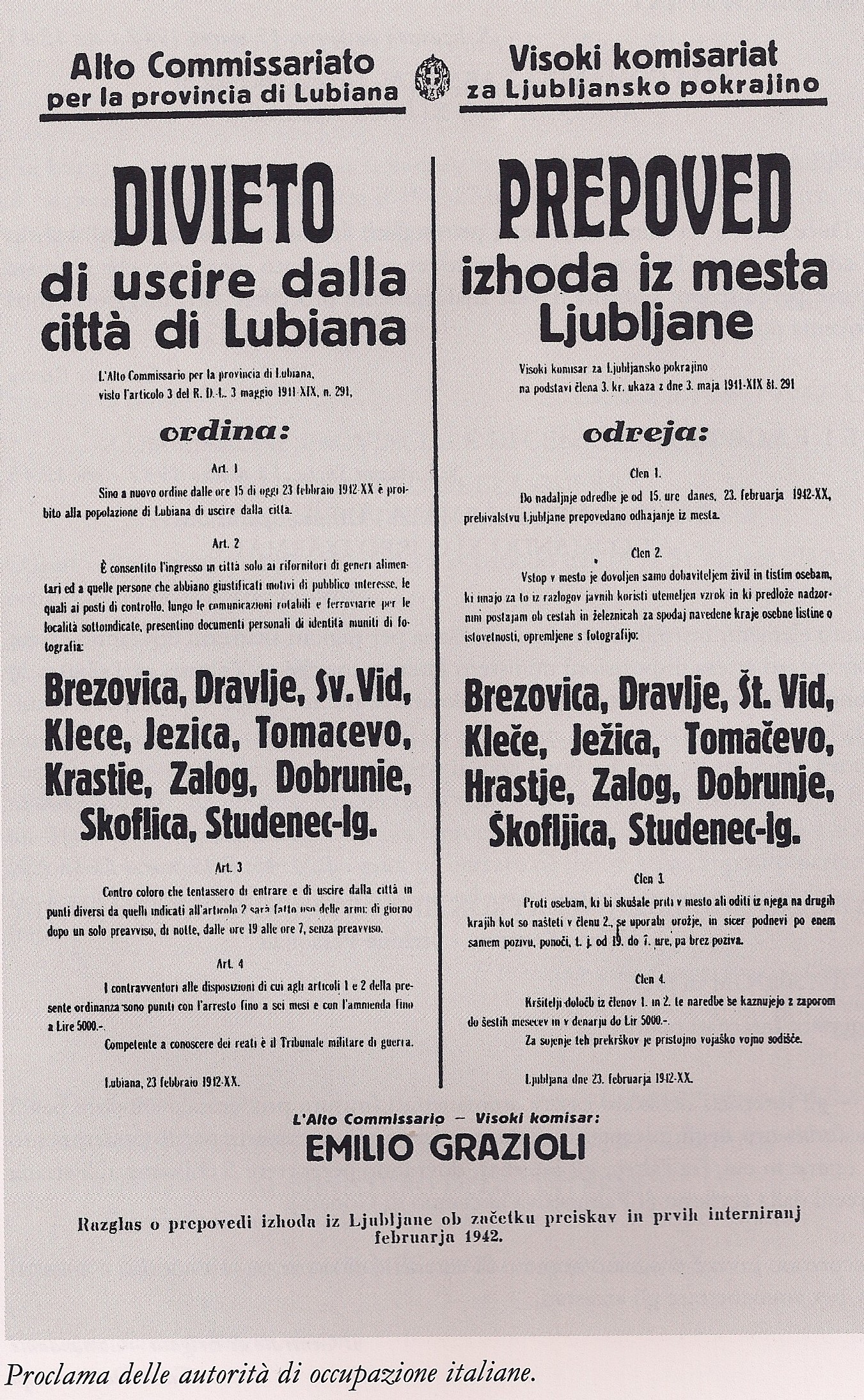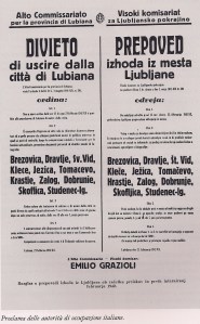 Qui a fianco l’ordine di non uscire da Lubiana quando l’esercito italiano circondò tutta la