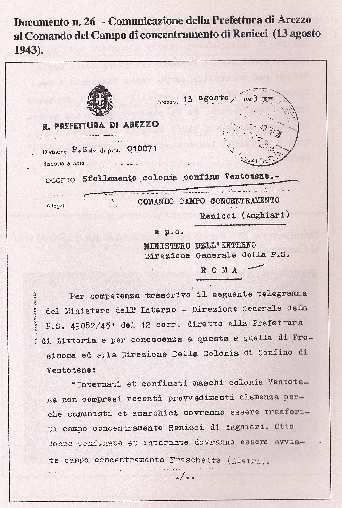 [dalla nota introduttiva di Carlo Spartaco Capogreco al libro: “Renicci, un campo di concentramento in riva al tevere”]