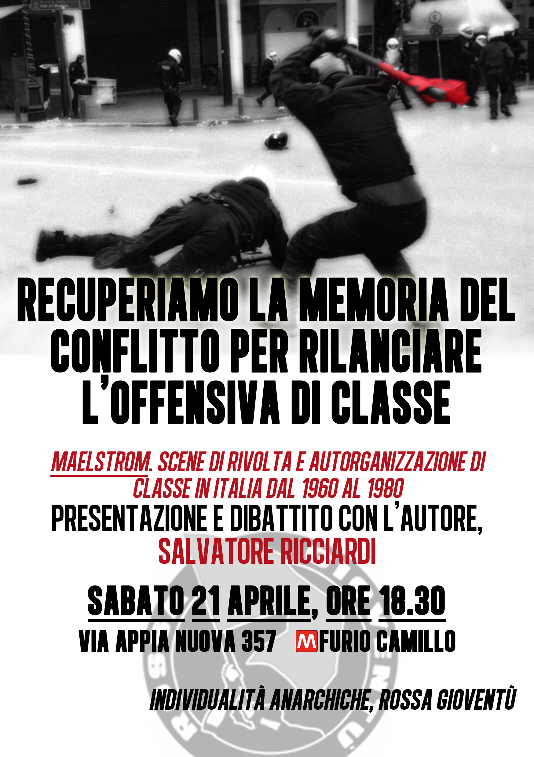 Questa voce è stata pubblicata in Recensioni, Presentazioni e dibattito sul libro Maelstrom e contrassegnata con conflitto, individualità anarchiche, maelstrom, Offensiva di classe, Rossa gioventù. Contrassegna il permalink.