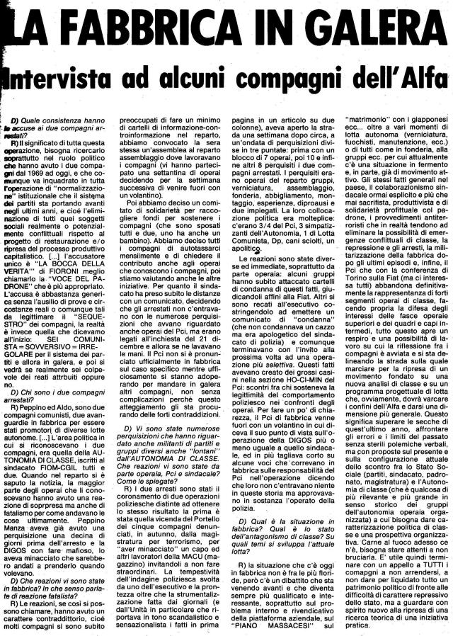 Repressione nella stessa fabbrica nel 1980 (da Controinformazione n.18 del giugno 1980) Quale la differenza?