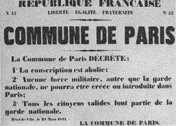 [..] Il 26 marzo era stata eletta e due giorni dopo veniva proclamata la Comune di Parigi. [..] Il 30 marzo la Comune aveva abolito la coscrizione e l’esercito permanente e proclamato che la Guardia nazionale, nella quale dovevano arruolarsi tutti i