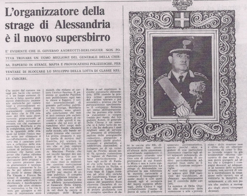 Questa voce è stata pubblicata in Repressione dello Stato e contrassegnata con Alessandria, antiterrorismo, carceri, Dalla Chiesa, Generale, Italsiel, rivolte nelle carceri. Contrassegna il permalink.