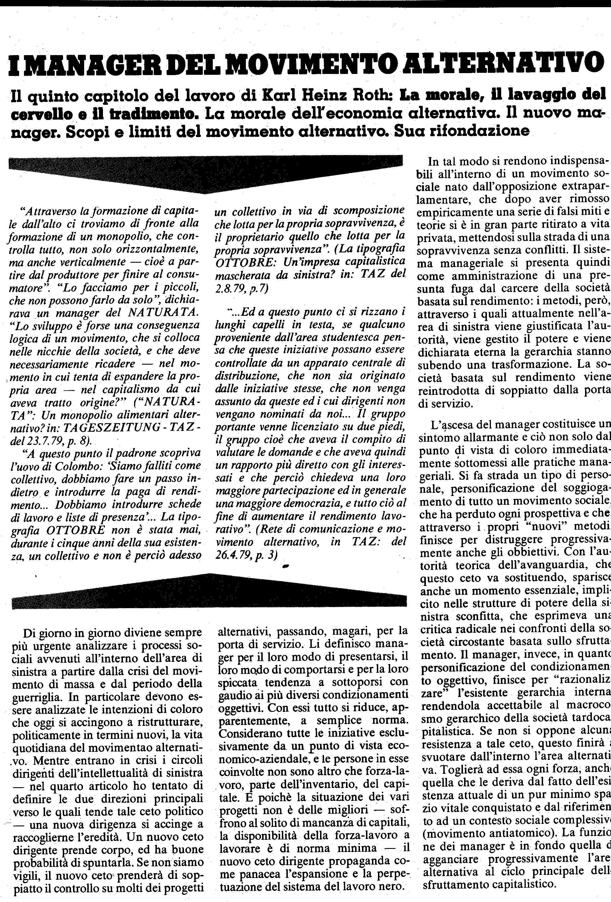 “I Manager del movimento alternativo” Uno scritto del 1980