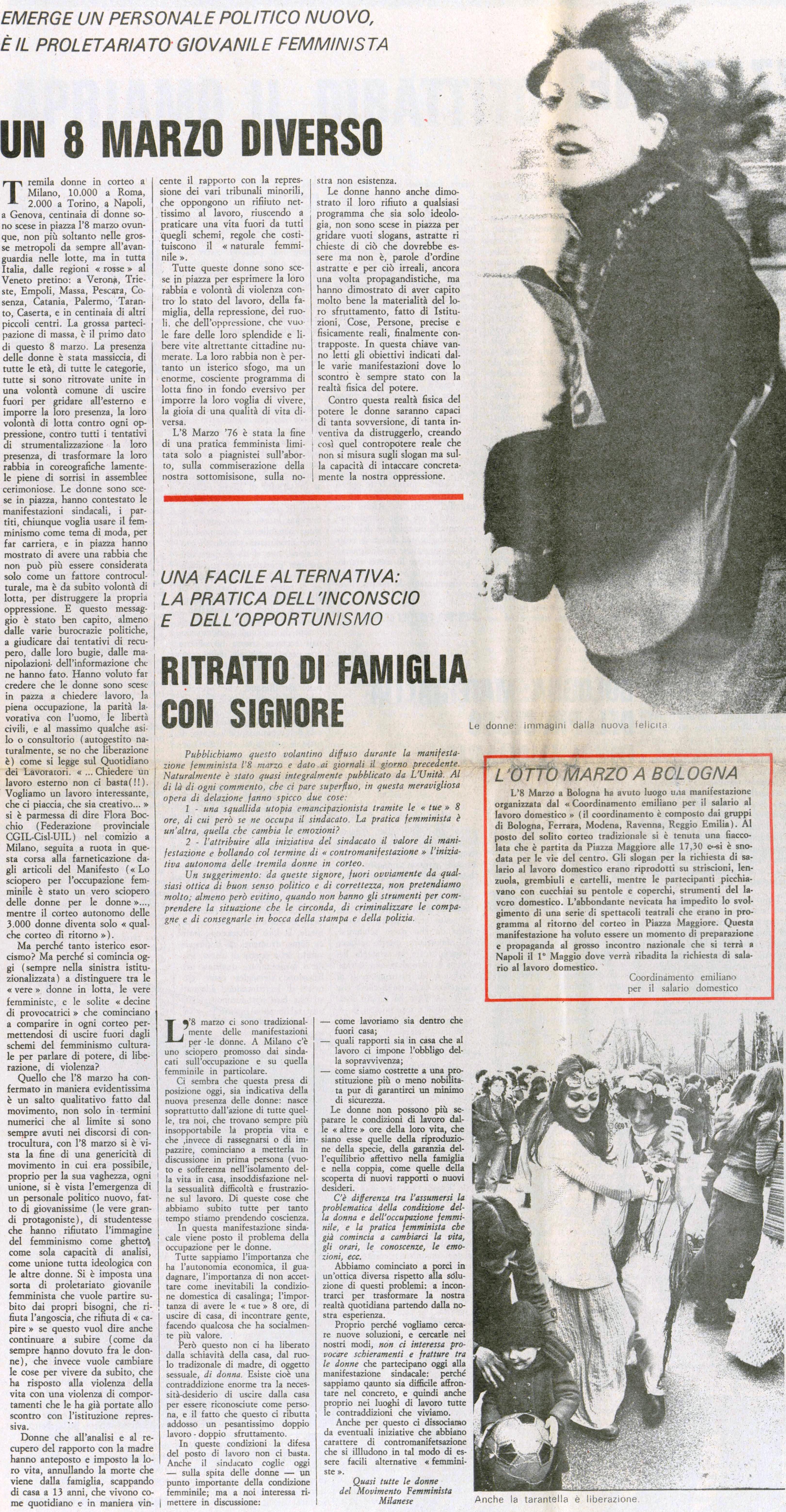 W la lotta delle donne! Pagine dell’8 marzo 1976