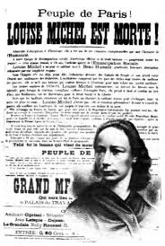 Il 9 Gennaio 1905 moriva a Marsiglia Louise Michel, una rivoluzionaria attiva nelle giornate della Comune di Parigi, sia nella preparazione sia nel primo esempio di autogestione proletaria di una realtà industriale: dal 18 marzo al 28 maggio 1871, (vedi anche qui), collaborò ai giornali che sostenevano la rivoluzione: «Le Cri du peuple» e «La Marseillaise».