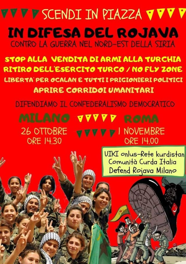 IL corteo sarà aperto dallo striscione ” DEFEND ROJAVA“, con in testa le