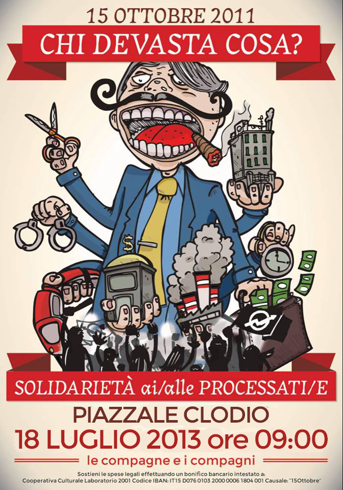 Contrassegnato 15 ottobre 2011, arrestati per 15 ottobre, devastazione e saccheggio, manifestazione, piazzale Clodio, solidarietà, tribunale roma