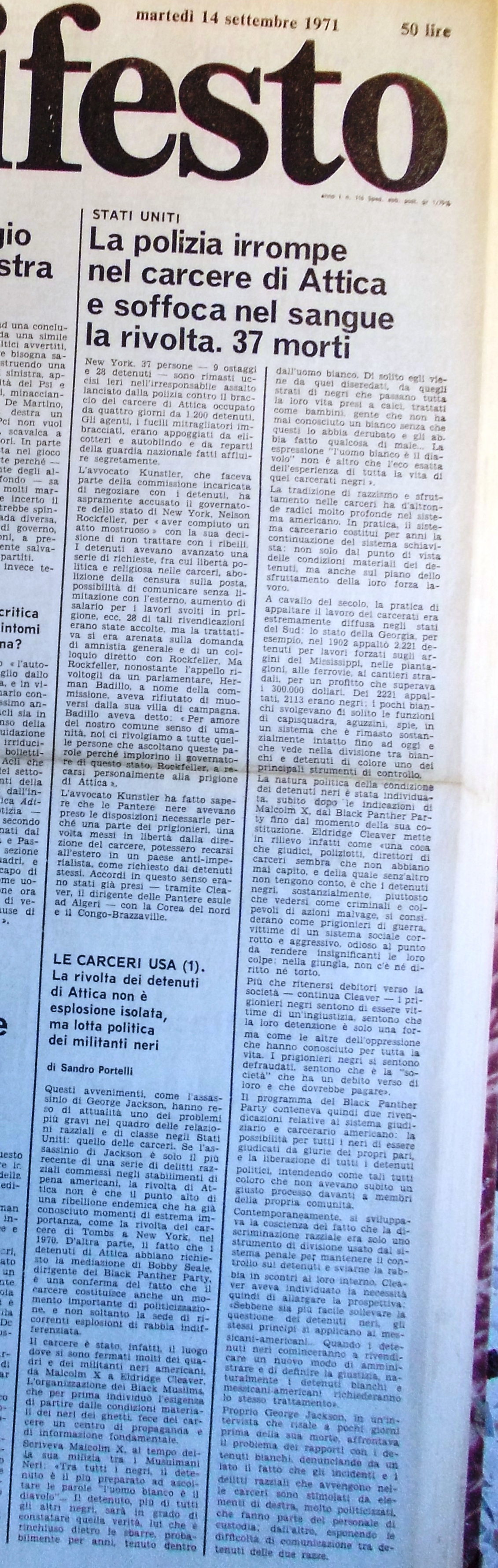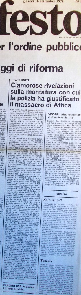 Attica non va dimenticata!!! Attica è stata una radiografia del sistema della giustizia statunitense! Attica è stato un check up sulla salute della democrazie negli Usa, e nel mondo, ovunque uno Stato utilizza il sistema carcerario!