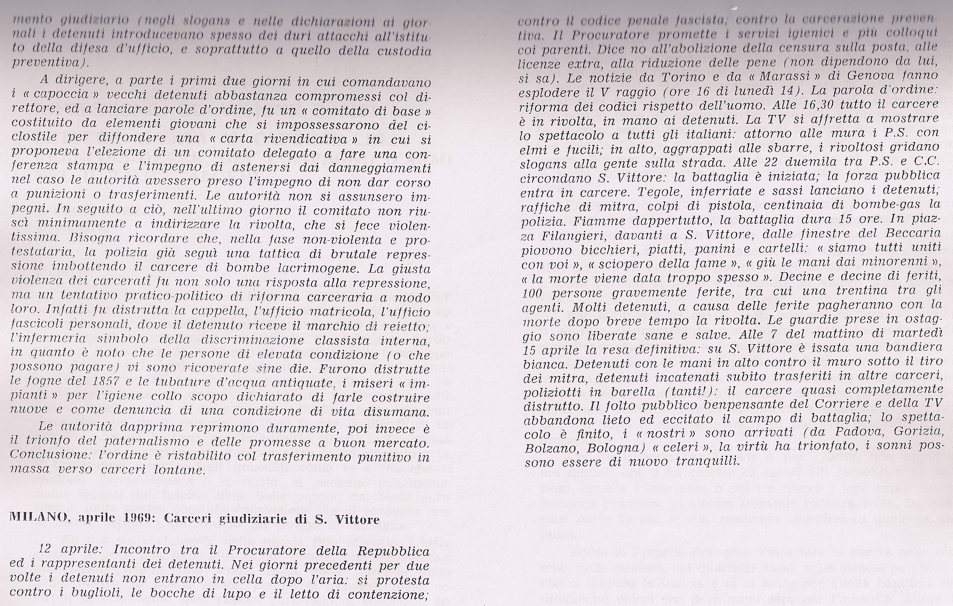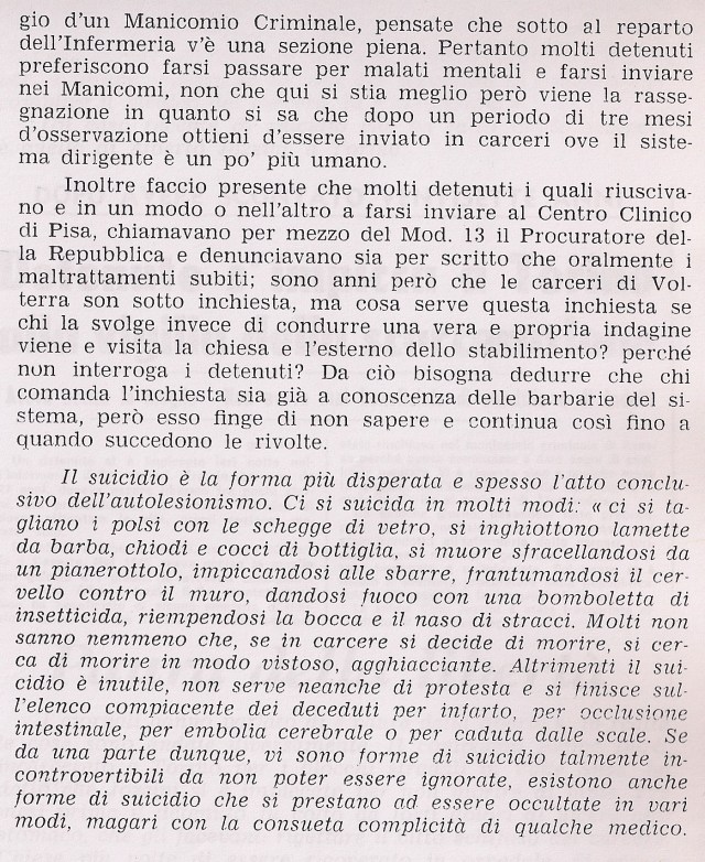 […] La frattura tra sindacato-istituzione e sindacato-movimento è profonda, definitiva; ma che importa? I burocrati sanno che quegli uomini da domani, relegati nelle loro case, in preda a un’irreversibile crisi d’identità, non conteranno più nulla. Spinti ai margini, soli, disperati, conteranno tra le loro file 167 suicidi. […] Quando tutto finì, si arrestò di colpo la vita turbolenta e disordinata di quei 37 giorni. Da quel momento la nostra vita si sarebbe svolta in spazi e con ritmi diversi.