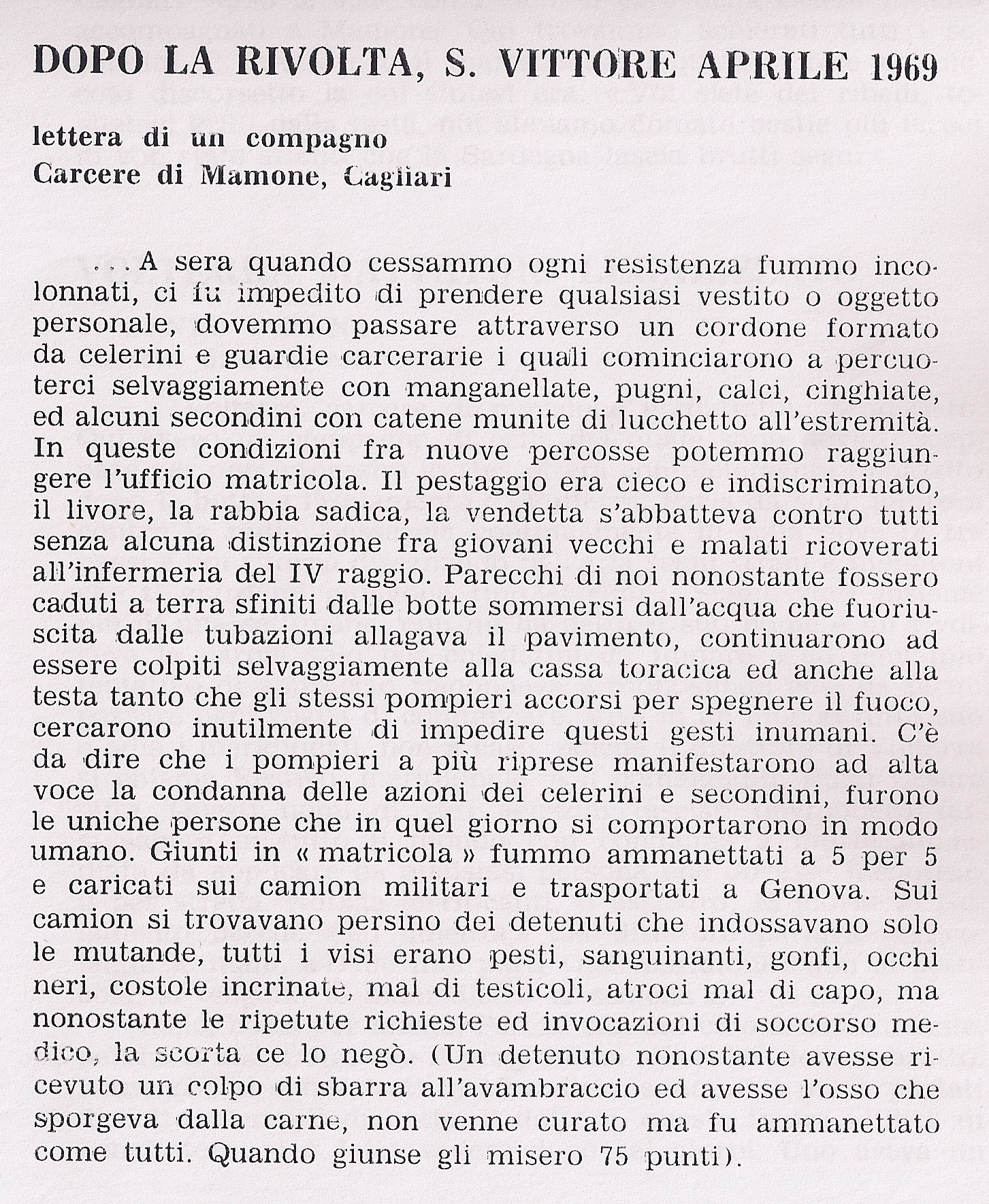 […] Conservo ancora una copia del volantino diffuso il giorno dopo ai cancelli dal Partito comunista che affermava: «La Fiat non è passata. 33 giorni di lotta operaia hanno piegatola Fiat e l’hanno costretta all’accordo…».